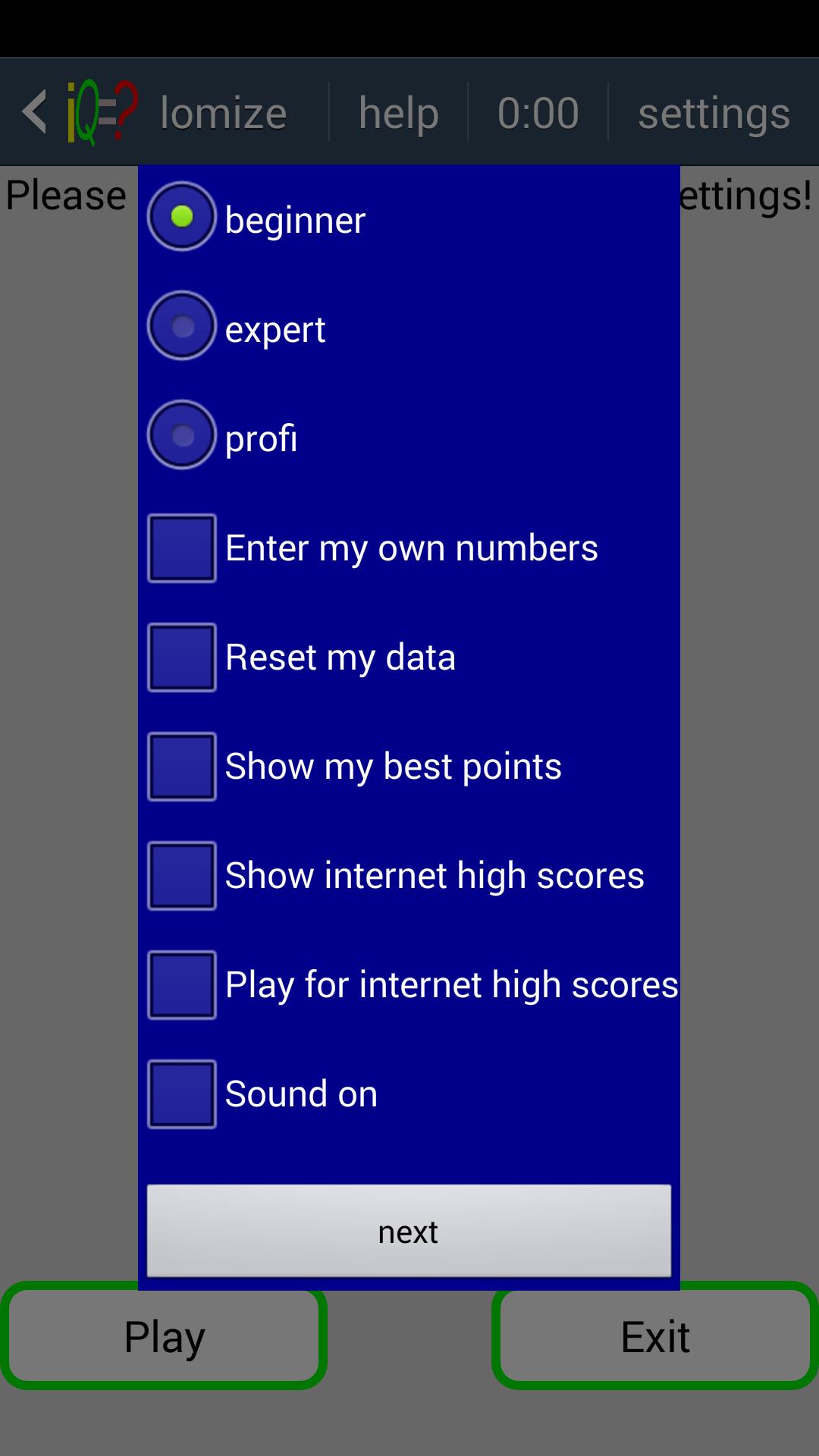 يمكنك مقارنة نقاط الذكاء المكتسبة من خلال استخدام النتيجة عالية الإنترنت مع نتائج اللاعبين الآخرين في العالم. يتم حساب نقاط الذكاء وفقًا لصيغة خاصة وتتوافق مع الإطار المقبول عمومًا من 80 إلى 250.